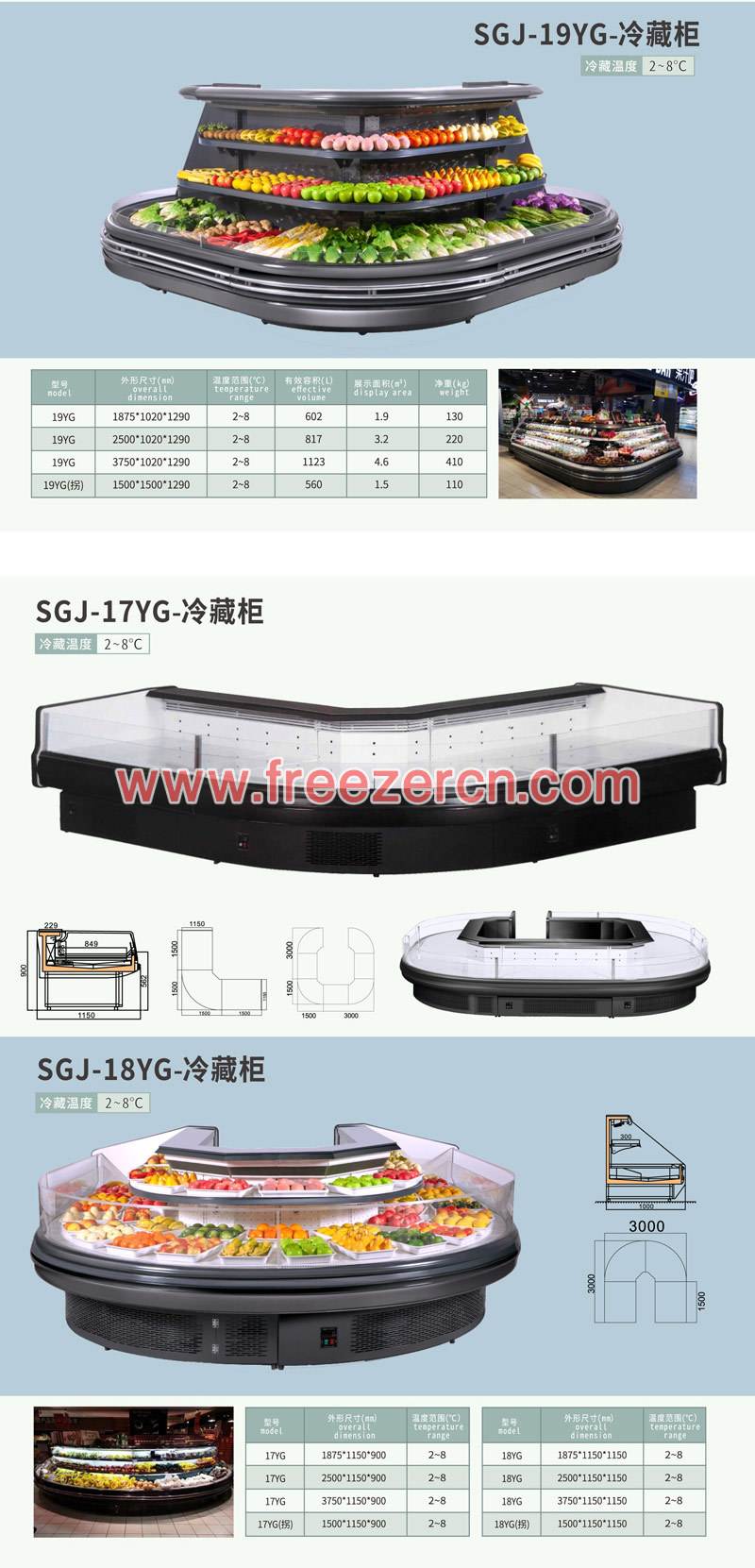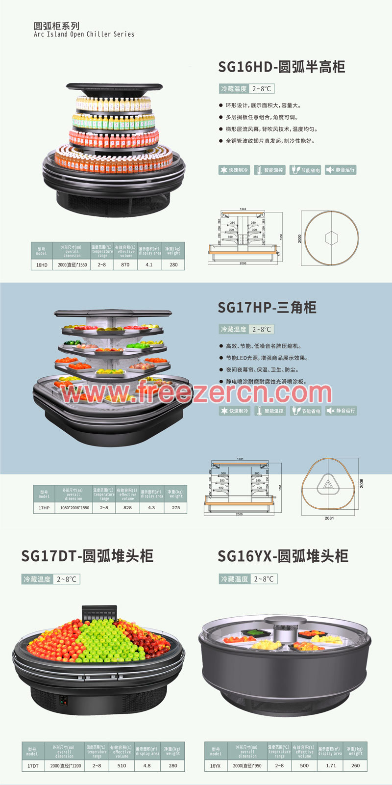 | 产品类型 Type | 立式风幕柜 Refrigerated Multideck Cabinet | 产品型号 Model | SG15HD |