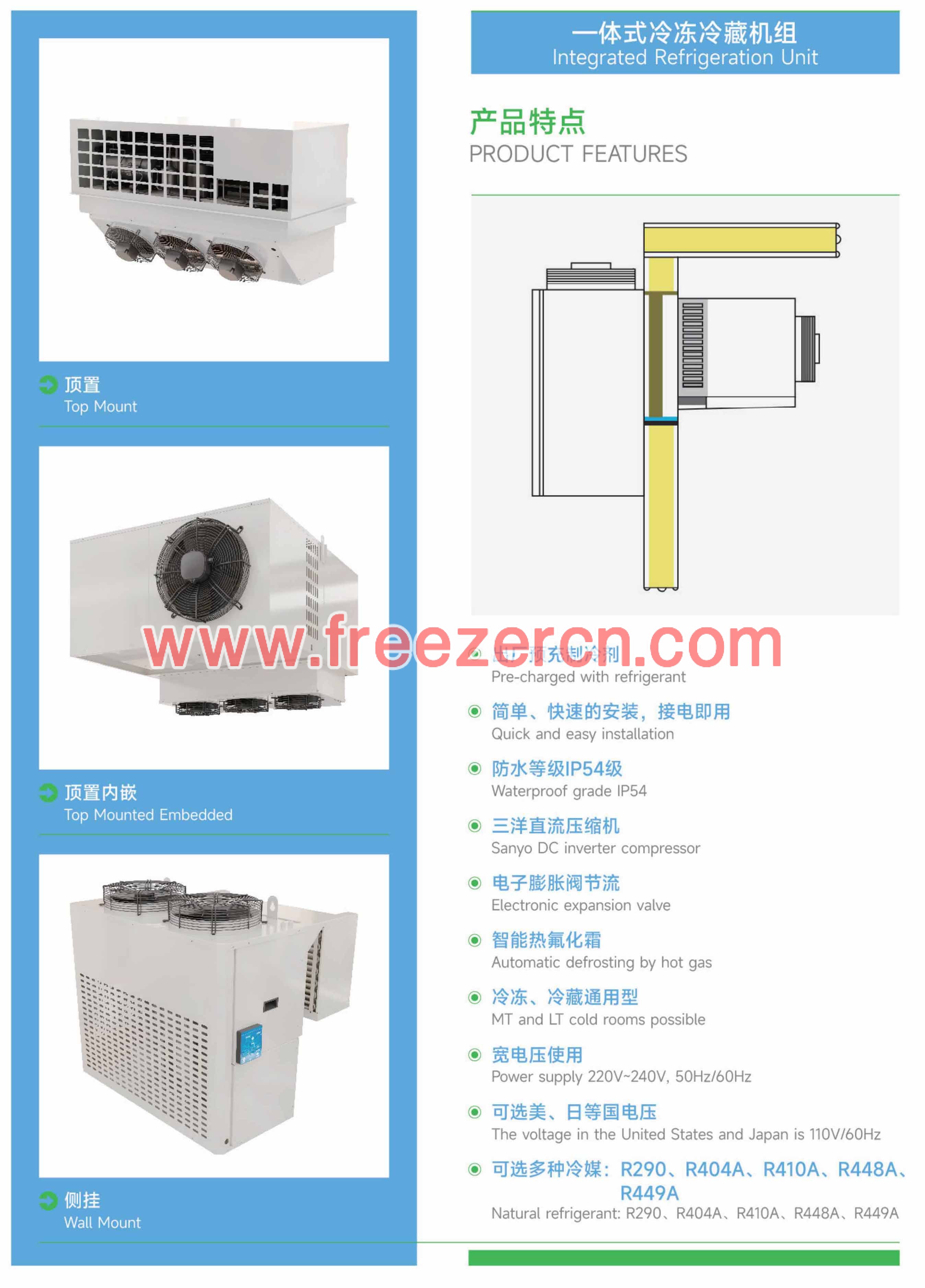 1P~4P hot defrosting, refrigeration, and freezing top mounted integrated machine