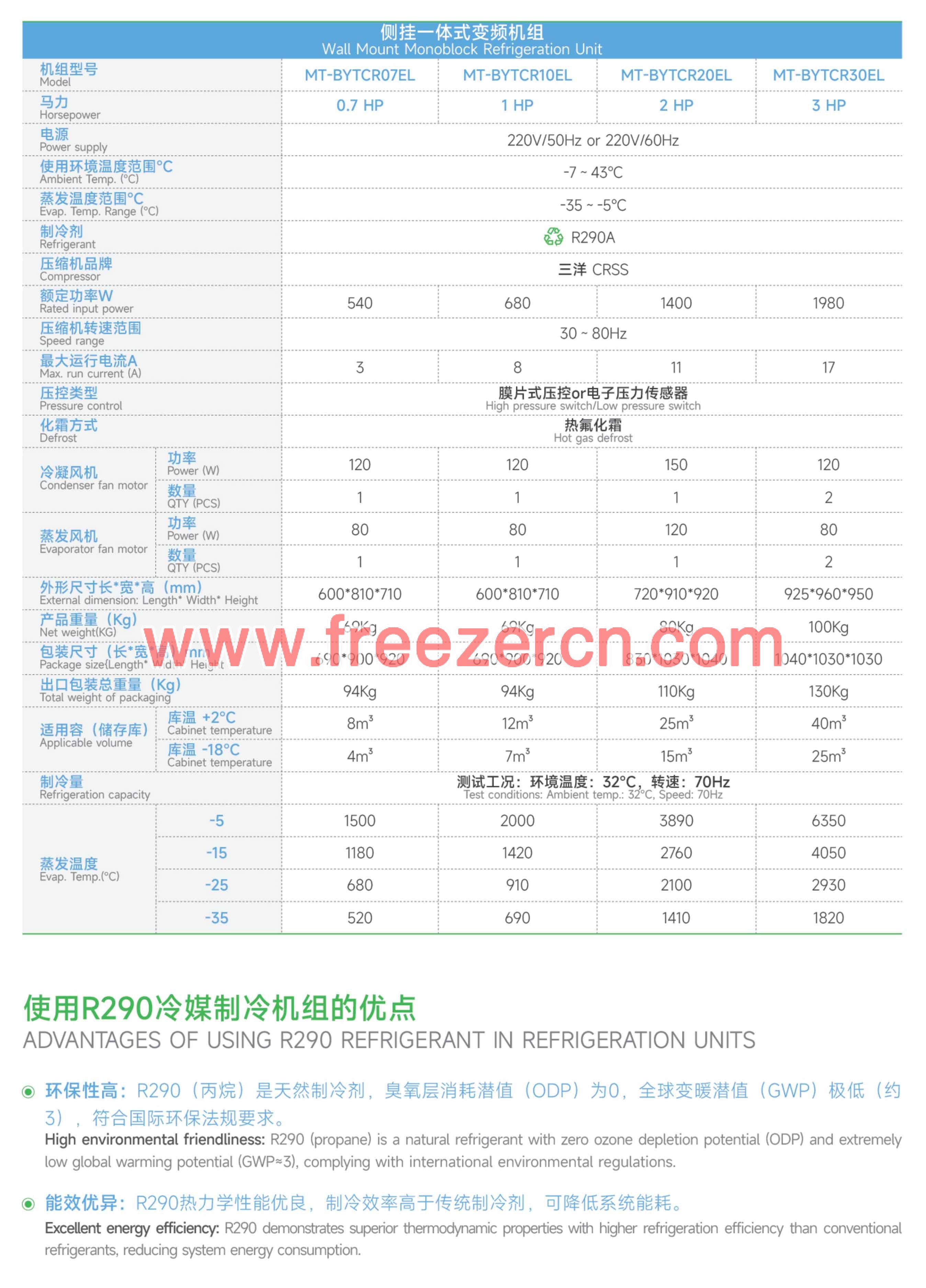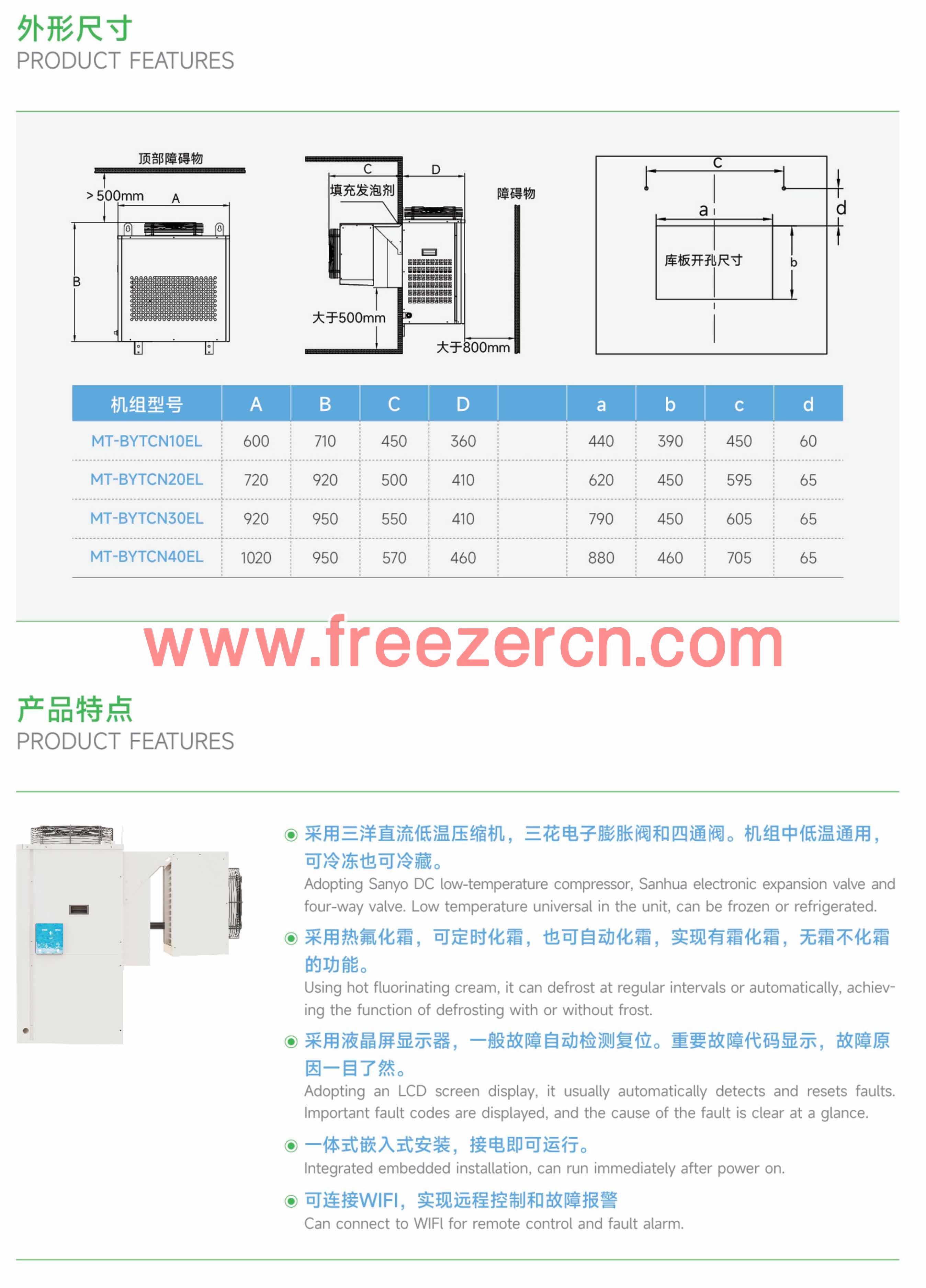 1P~4P hot defrosting, refrigeration, and freezing top mounted integrated machine
