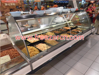 ◆ 大圆弧玻璃,外观设计美观大方,且可选择机组外置,前翻盖熟食柜柜体任意加长拼接。前翻盖熟食柜柜体采用流线型防撞型保护,美观大方,经久耐用。针对前翻盖熟食柜运行的恶劣环境,前翻盖熟食柜零部件全部进行防腐防锈处理,采用静电喷粉工艺喷涂保护层;