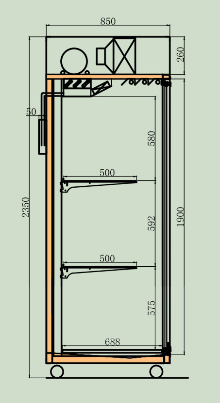 | Exterior (D x W x H) | 1350*850*2350 | 1550*850*2350 | 1978*850*2350 | 2274*850*2350 | 2606*850*2350 | 2998*850*2350 | 3234*850*2350 | 3722*850*2350 |