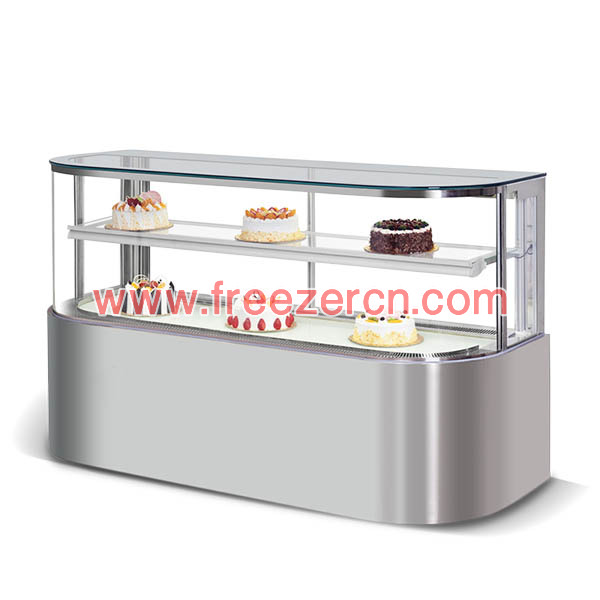 Double layer cake display cabinet with right angle 45 degree refrigerated food display showcases