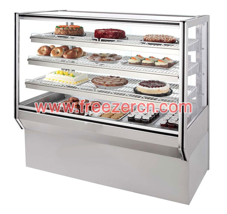 Double layer cake display cabinet with right angle 45 degree refrigerated food display showcases